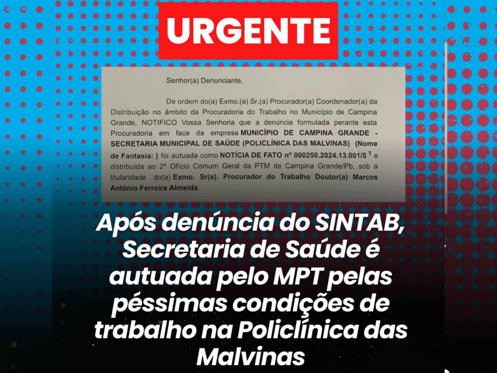 O Departamento Jurídico do SINTAB explicou que essa autuação é uma notícia de fato, ou seja, significa que a denúncia interposta pelo sindicato será devidamente apurada. As próximas etapas dessa ação judicial é o MPT chamar a Secretaria de Saúde para tentar corrigir o problema no local de trabalho e, caso não seja solucionado, o MPT pode abrir um TAC (Termo de Ajustamento de Conduta). Mais informações a respeito da tramitação da denúncia, pode ser obtida aqui: https://www.prt13.mpt.mp.br/servicos/movimentacao-de-procedimentos, do número 000250.2024.13.001-5.