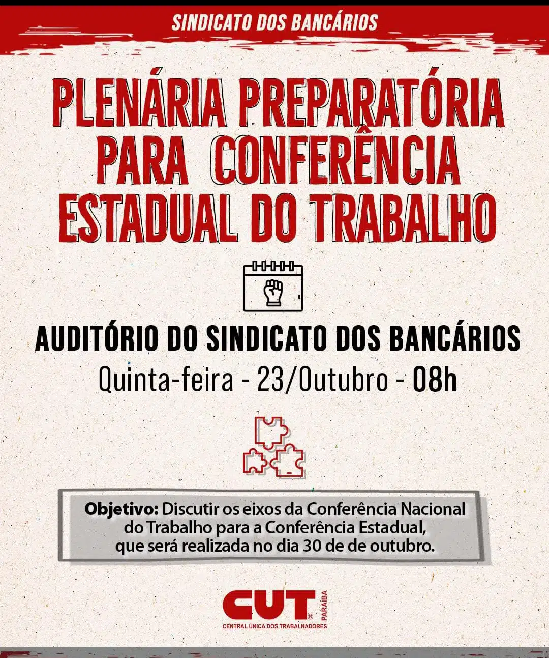 O diretor do Sintab Queimadas, Messias Santana, foi eleito delegado para a Conferência Estadual do Trabalho, representando o Sintab, durante Plenária Preparatória organizada pela CUT Paraíba, nesta quinta-feira, dia 23/10, no Sindicato dos Bancários.