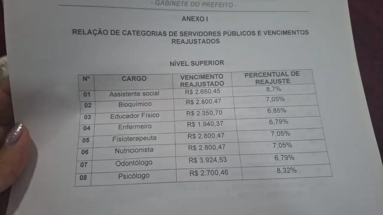 Na noite desta segunda-feira, 23/02, a direção do SINTAB Montadas acompanhou presencialmente na Câmara Municipal a apresentação do projeto de reajuste da Data-Base local. Vale destacar que a proposta não foi linear, porque ainda existem diferenças de valores entre categorias, devido às titulações. A votação do projeto acontecerá na próxima sessão da Câmara Municipal. Abaixo, confira a tabela com a relação das categorias de servidores e vencimentos reajustados.