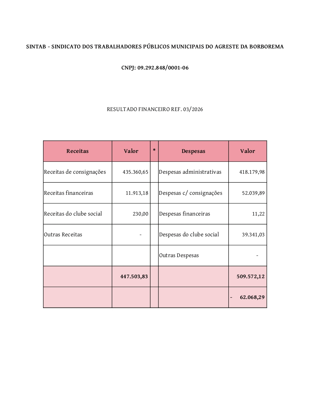 ✍️ Disponível a Prestação de Contas de MARÇO de 2026 nas redes sociais e no site: sintab.org.br. SINTAB é Transparência. Quem quiser conferir com mais detalhes, basta solicitar a tesouraria ou a presidência, que os dados serão disponibilizados na íntegra.